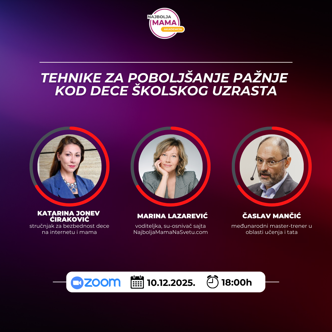 Pridružite se stručnjaku za bezbednost dece na internetu Katarini Jonev Ćiraković i master-treneru za učenje i kreatoru programa brzog čitanja i mudrog učenja Časlavu Mančiću na posebnom webinaru